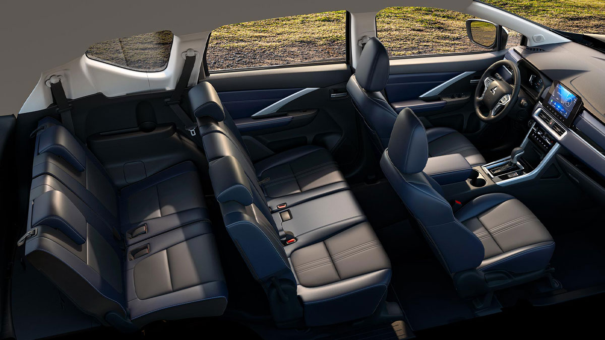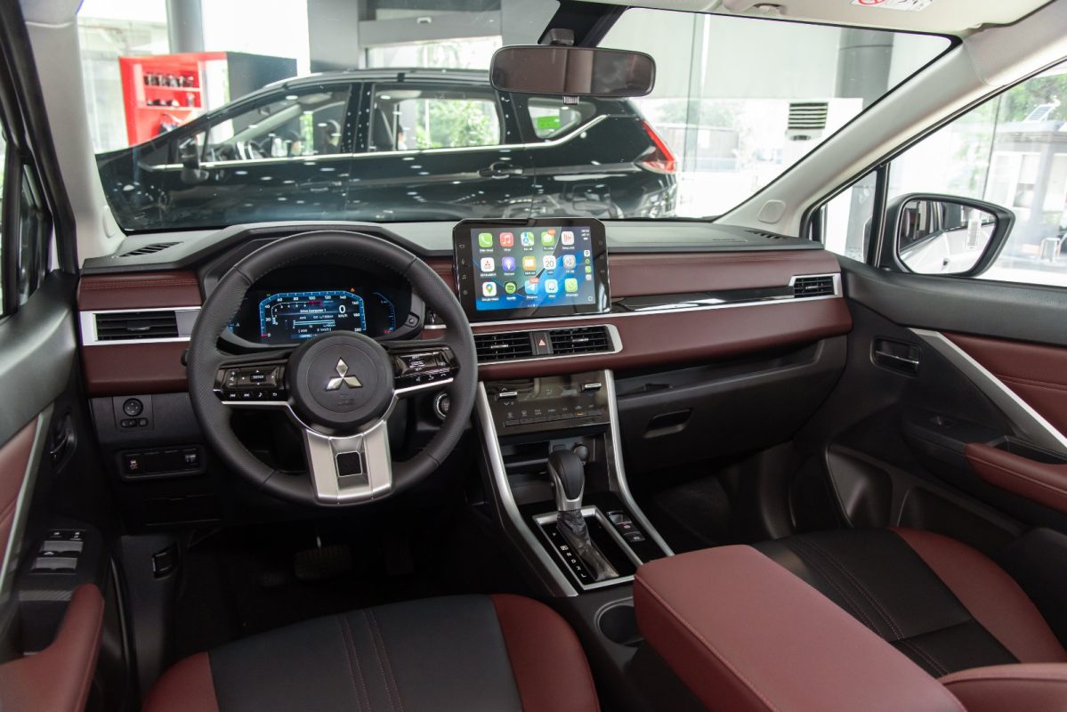 Nội thất hai tông màu Xanh Navy – Đen thể thao, sử dụng vật liệu da cao cấp có khả năng giảm hấp thụ nhiệt. Mitsubishi Xpander Cross được trang bị màn hình giải trí 9 inch sắc nét, kết nối với điện thoại thông minh qua Apple CarPlay/Android Auto & MM-Link. Phanh tay điện tử (EPB) đi cùng giữ phanh tự động (Auto Hold) tạo nên không gian thuận tiện, gọn gàng và tăng thêm trải nghiệm an toàn khi lái xe.