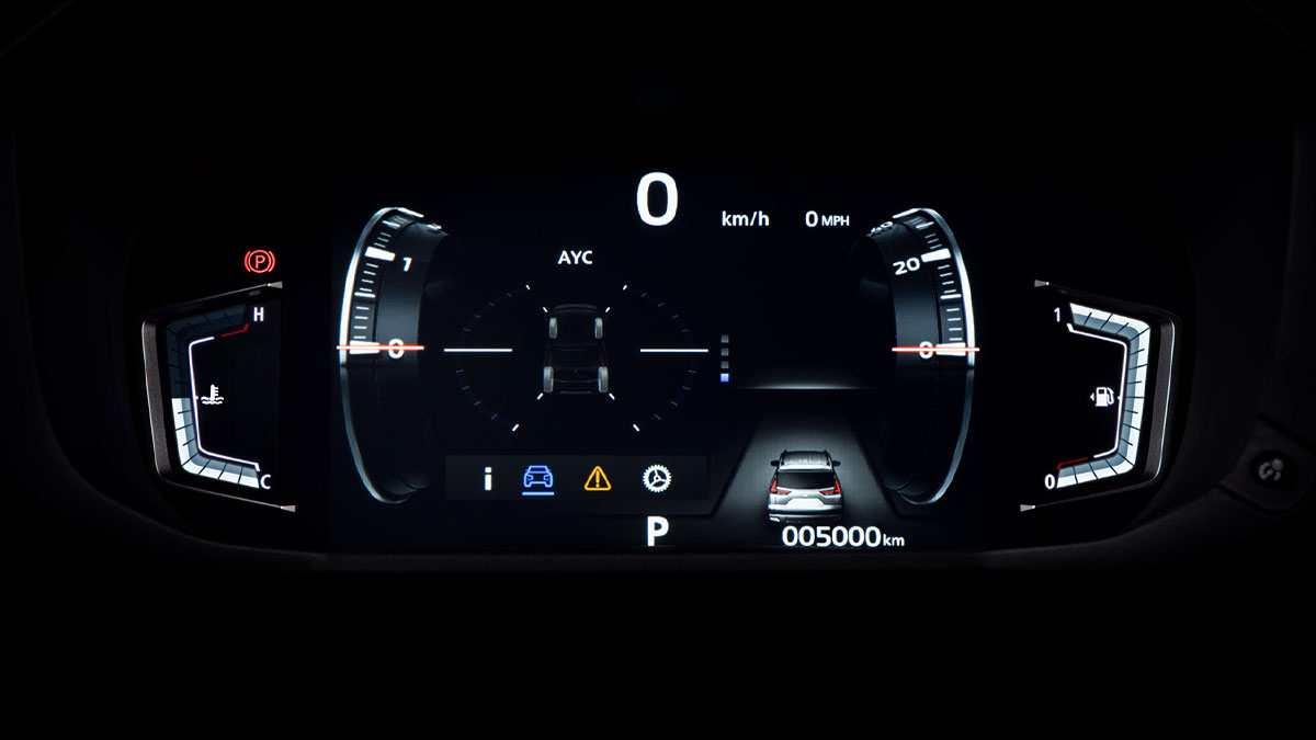 Hệ thống kiểm soát vào cua chủ động (ACTIVE YAW CONTROL): Hỗ trợ người lái giữ xe ổn định khi di chuyển trong điều kiện đường trơn trượt & khúc khuỷu, tự tin kiểm soát khi vào cua chính xác, mượt mà và an toàn. Tính năng còn được hiển thị trên đồng hồ kỹ thuật số 8-inch sau vô lăng, giúp người lái dễ dàng theo dõi.